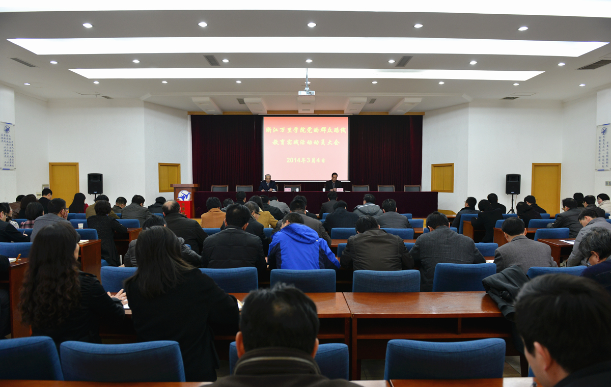 3月4日下午,校党委在行政楼212会议室召开浙江万里学院开展党的群众路线教育实践活动动员大会,贯彻落实中央和省、市委关于开展党的群众路线教育实践活动的要求,对我校深入开展党的群众路线教育实践活动进行动员部署。 宁波市委对我校党的群众路线教育实践活动高度重视,市委活动办对我校实践活动直接指导和督查。在动员大会前,校党委在市委活动办的指导帮助下,成立了教育实践活动领导小组及办公室、督察组,制定了活动方案,相关文件已经校党委会审议通过并正式发文。 宁波市委活动办、市委组织部干部处楼开河副处长,市委教育工委组织处黄治副处长专程来校参加动员大会。学校领导班子成员、全体中层干部、民主党派负责人、教授代表、离退休教职工代表与会。执行校长、教育实践活动领导小组组长应敏主持大会,党委副书记、副校长、教育实践活动领导小组组长蒋建军作动员讲话。 教育实践活动领导小组组长、执行校长应敏要求大家要深刻领会,统一思想认识,切实增强搞好党的群众路线教育实践活动的紧迫感和使命感,以饱满的政治热情、良好的精神状态、务实的工作举措,精心组织开展好我校教育实践活动的各个环节和各项活动;要按照“干在实处、走在前列”的整体要求,扎实开展、有序推进、保质保量地完成好教育实践活动的各项目标任务,交出一份师生满意的答卷;围绕“办好人民满意的高等教育”这一命题,不断巩固实践活动取得的成果,通过建章立制,把学校体制机制的优势转化为完善作风建设的长效机制,把“以生为本”的理念落实到各项工作中,以作风建设的新成效赢得广大师生内心的真正认可与信任,凝心聚力,共同推动学校事业持续健康发展。 教育实践活动领导小组组长、校党委副书记蒋建军在会上作了开展党的群众路线教育实践活动动员报告。报告紧扣中央和省、市委动员会议精神,贴近学校工作实际,从“深刻认识开展教育实践活动的重大意义”、“准确把握教育实践活动的主要内容和总体要求”、“扎实有效推进教育实践活动”等三个方面进行了具体部署,即明确了“规定动作”又确定了“自选动作”。蒋建军副书记特别强调指出,从学校层面来认识,坚持党的群众路线,开展党的群众路线教育实践活动,是完成高等教育人才培养的根本任务、“办好人民满意的高等教育”的需要;万里顺应高等教育大发展的形势,通过体制机制创新,实现了学校跨越式发展,以往成绩是我们进一步做好工作的基础和信心所在;面对学校内外形势的变化,面对人们对接受优质高等教育的需求,必须进一步提振精气神,真正适应社会、产业、行业的需要,契合学生发展的内在需求,培养合格的建设者和接班人。 (宣传部) |