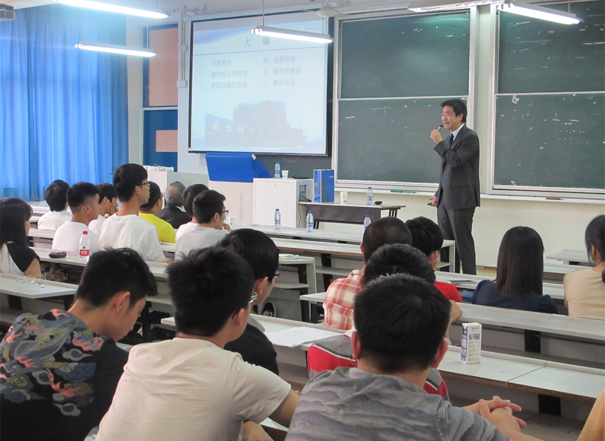 5月29日上午,台湾南台科技大学校长戴谦和国际事务长王永鹏来访我校。执行校长应敏、副校长钱国英热情接待。双方回顾了两校自建立合作关系以来所取得的成绩,并展望和探讨两校在人才培养,教师互访,科研合作等多个层面的前景和潜在的合作可能,共享教育资源。 自2012年9月以来,万里学院已经选送了51名学生赴南台科技大学学习一个学期。以项目参与为形式的教学模式受到万里学子的欢迎,授课老师丰富的业界经验也使得课堂教学和课外辅导具有很强的实用性和操作性。为此,两校将一如既往的推进学生交流项目。戴谦校长非常推崇在校期间的交流项目,他认为新的环境为学生提供了成长、成熟的机会,学生项目交流也必将带动两校在专业建设、教师共享、科研合作等合作向更广更深的方向发展。 随后,戴谦校长和王永鹏国际长还到生物与环境学院为有意向的学生介绍南台科技大学,并解答了9月即将赴该校交流学生的提问。学生提问踊跃,会场气氛活跃。 (港澳台办) |
