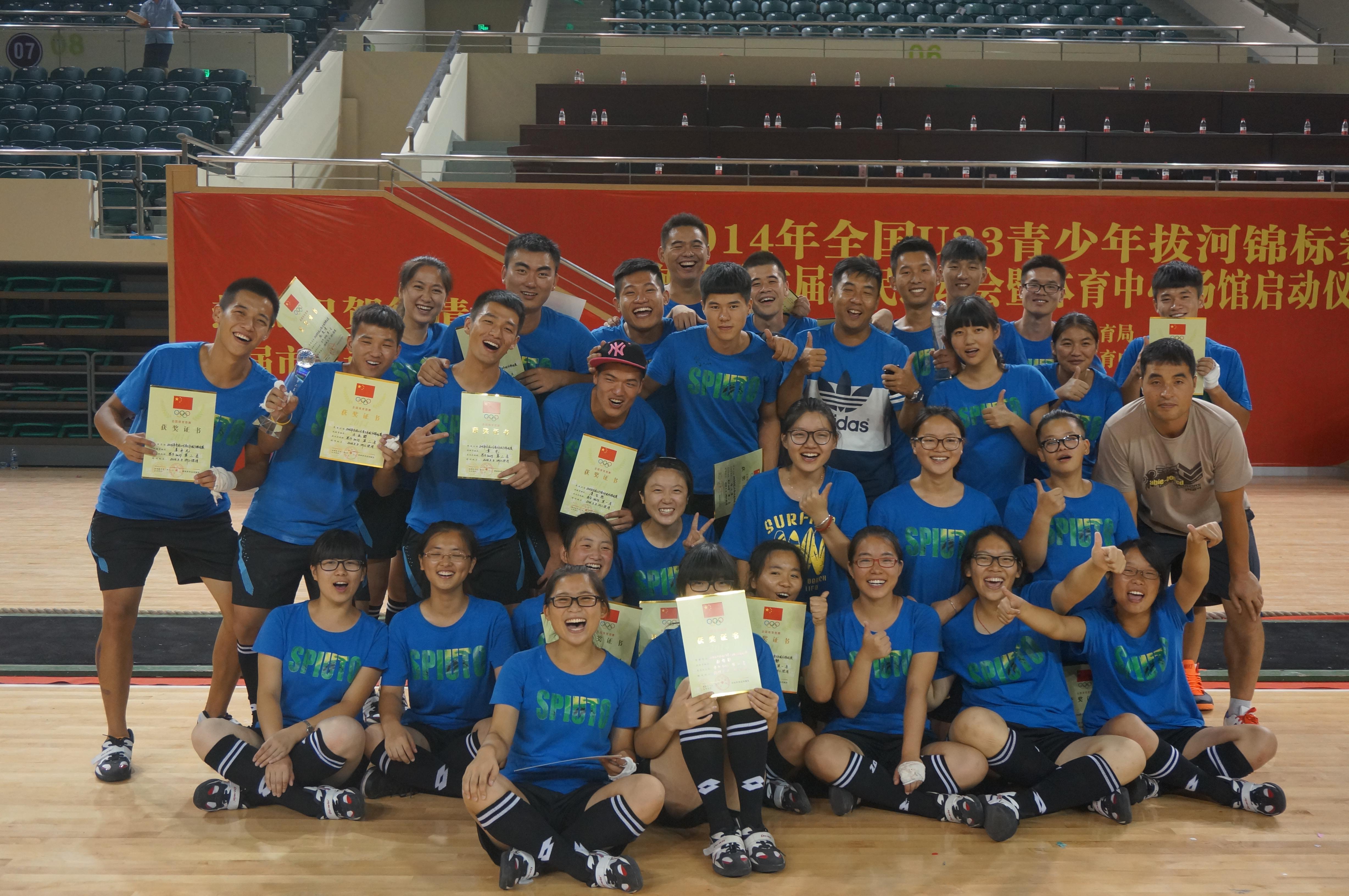 2014年8月6-8日,我校万里拔河队参加了在湖州德清举办的“全国U23青少年拔河锦标赛”。各支队伍经过赛前的夏令营培训,团队协作精神和“新式”拔河技术都有了新的认识。队员们凭借着拼搏向上、吃苦耐劳的体育精神,顺利通过预赛,进入半决赛,杀进决赛,并在决赛中获得“男女混合560公斤级”第一名、“女子500公斤级”第一名、“男子600公斤级”第二名、“男子560公斤级”第三名的优异成绩。 在全国U23青少年拔河锦标赛中获得的佳绩,充分的体现了省示范学院的建设优势,诠释了文体部自体育教学、竞赛改革以来的优秀成果,为浙江万里学院在全国高校体育竞赛表现中树立了优秀的形象。万里学院拔河队暑期主动放弃休假,冒着高温酷暑经过了一个月的艰苦集训,整体技术水平有了显著的提高,参赛人员动作规范、技术娴熟,激情饱满、斗志十足,展现了我校师生良好的风貌和综合素质。 本次比赛由国家体育总局社体中心主办,德清县人民政府承办。来自全国各地的10余支队伍,近200名运动员参加本次比赛,一共分为4个比赛级别,我校获得了其中两个级别冠军,这样的优秀成绩是我们用汗水和拼搏换来的,是我们实力的见证!